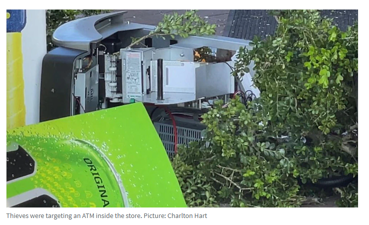据悉,黄金海岸一家烟草店发生ATM抢劫事件,窃贼用一辆小型货车撞击ATM后,将其拖走。