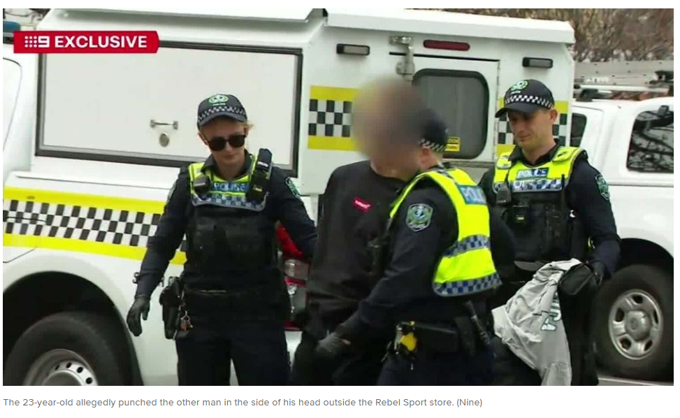 这名23岁的男子在Rebel Sport商店外猛击另一名男子的头部。