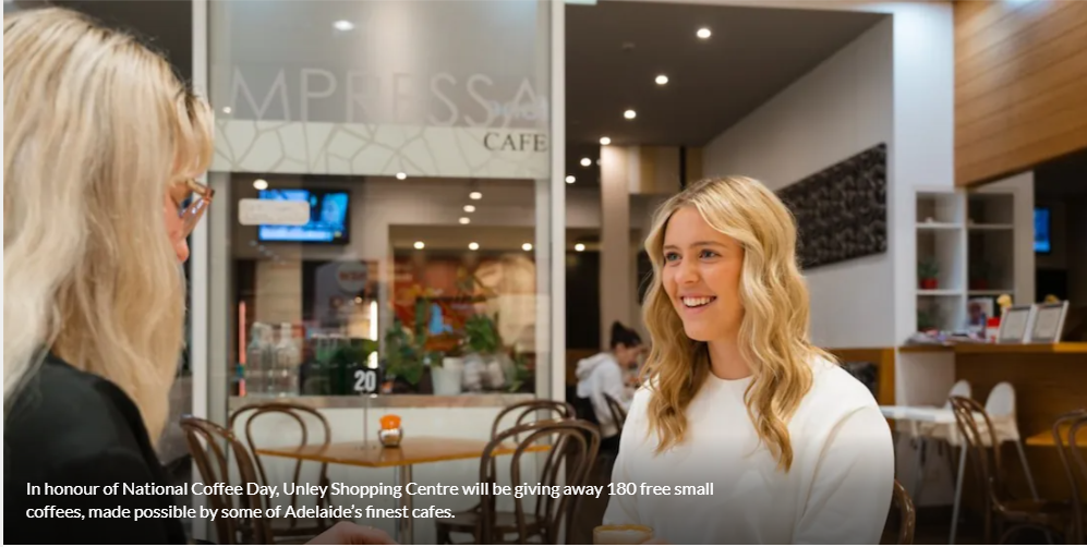 标题: 阿德Unley购物中心为庆祝全国咖啡日,免费供应咖啡!