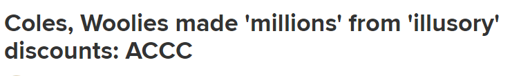 标题: Woolworths和Coles被告上法庭!虚假折扣误导消费者获利数百万!
