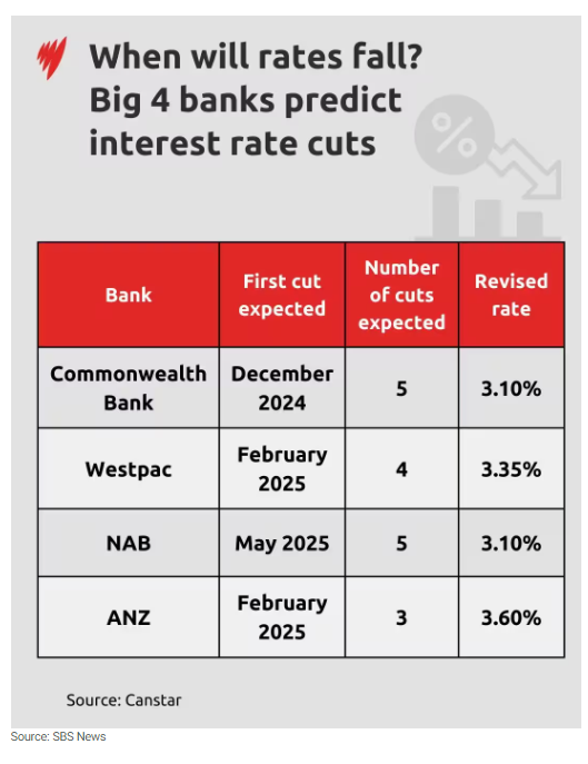 澳大利亚四大银行中的三家预测最早将在明年2月份降息。