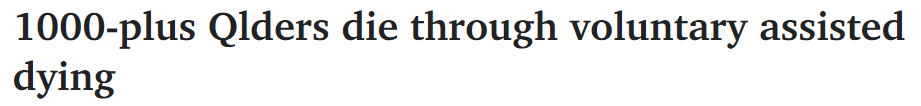 据悉,一份新报告显示,在昆州提供安乐死服务的头18个月中,有1000多人通过该服务结束了自己的生命。