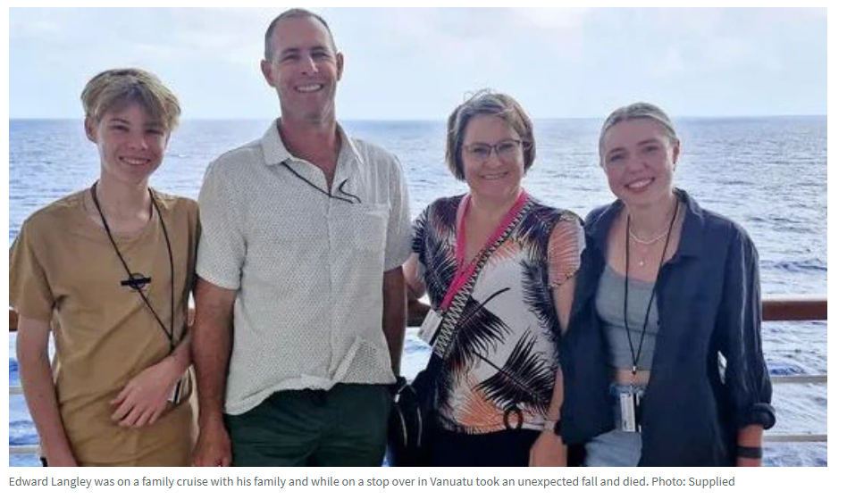 Edward Langley和家人正在瓦努阿图旅游探险,期间这位两个孩子的父亲突发疾病摔倒。