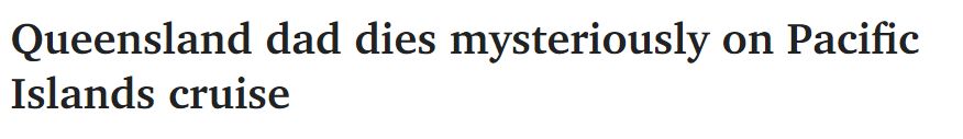 据悉,一对昆州夫妇带着两个孩子去瓦努阿图一日游,期间这名父亲疑似突发疾病突然死亡。