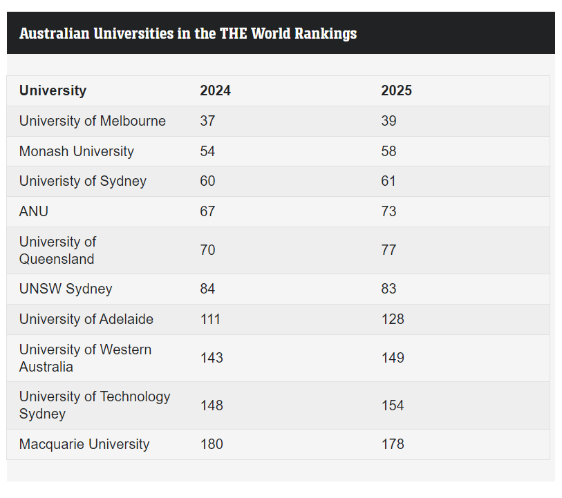 标题: 澳大利亚大学在全球排名中下滑!