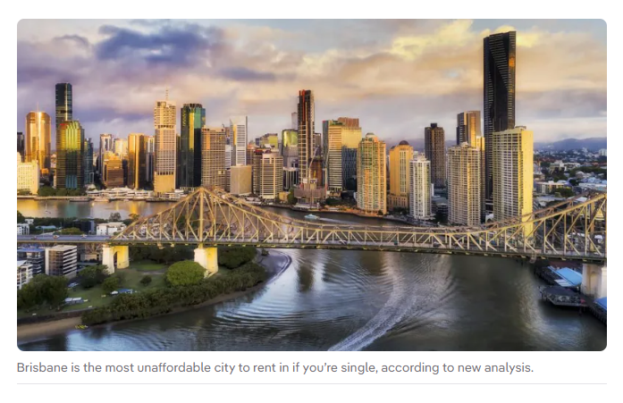 "相比之下,布里斯班和阿德莱德缺乏公寓开发,导致单身人士租房成本更高。因此,这些城市的人们需要花费比收入更多的钱才能租到房子。"