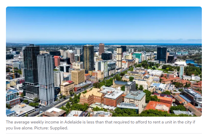 在阿德莱德,平均周薪约为1500澳元,而租住一套公寓所需的周薪约为1700澳元。