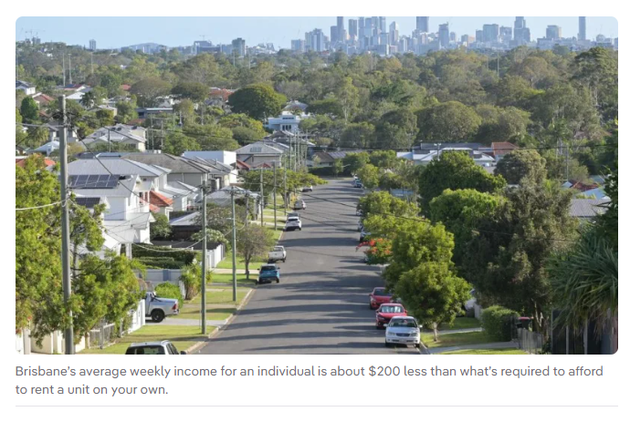 在布里斯班,平均周薪为1800澳元,而租住一套公寓所需的周薪为2000澳元,这意味着租客需要多支付200澳元。