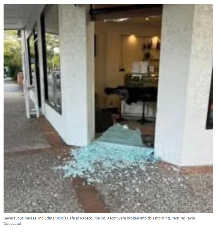 周三凌晨,Racecourse Rd in Ascot多家企业受损,大量现金被盗,警方正在调查。