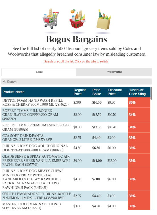标题: 联邦法庭文件显示:Woolies、Coles超市虚假折扣涉及大量日常用品!