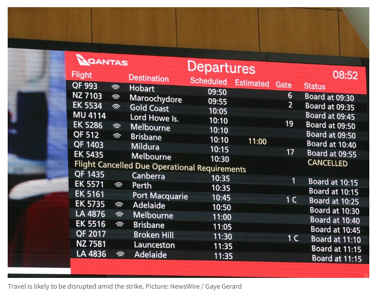 标题: 今日,澳航员工将罢工,布里斯班机场或受影响!