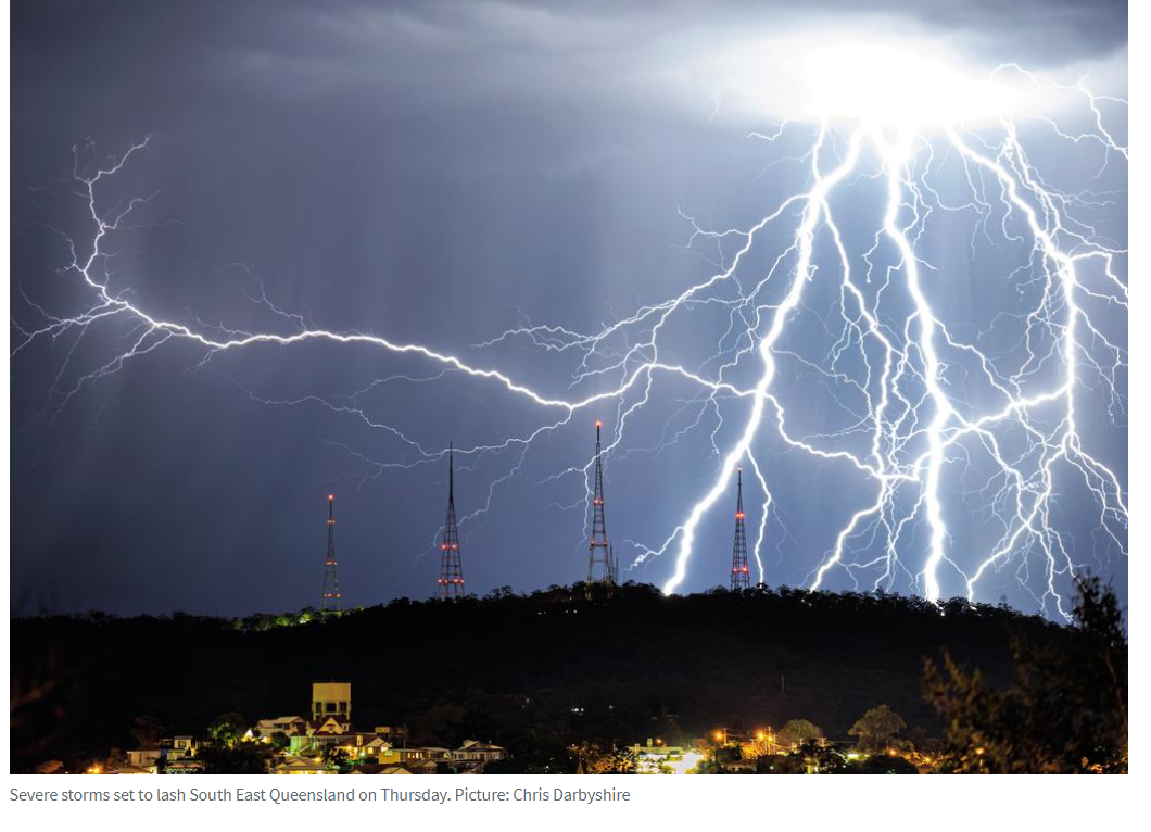 "今天傍晚 7 点左右开始,我们将看到这些风暴进一步南下,穿过Darling Downs南部地区,如Toowoomba、Warwick和Stanthorpe,并在夜间向海岸推进。"