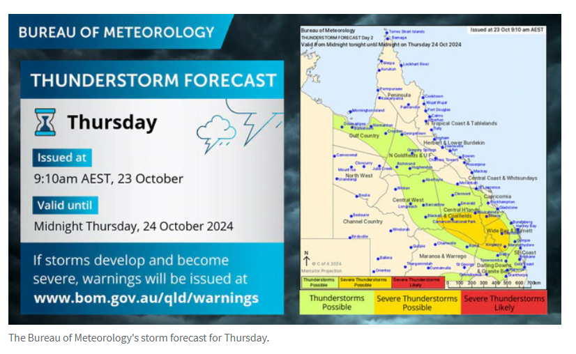 除了狂风暴雨之外,全州各地的气温也十分闷热,布里斯班、阳光海岸和黄金海岸的最高气温将达到32℃,一些内陆地区的气温将达到35℃。