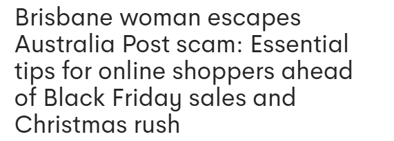 标题: 布里斯班女子险些陷入邮政骗局:黑色星期五和圣诞促销高峰即将来临,网购者谨防诈骗!