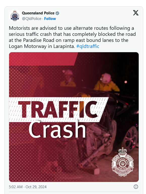 早晨6点26分左右,两辆卡车和第三辆车在Paradise Road匝道附近发生碰撞,急救人员迅速赶往Logan Motorway。