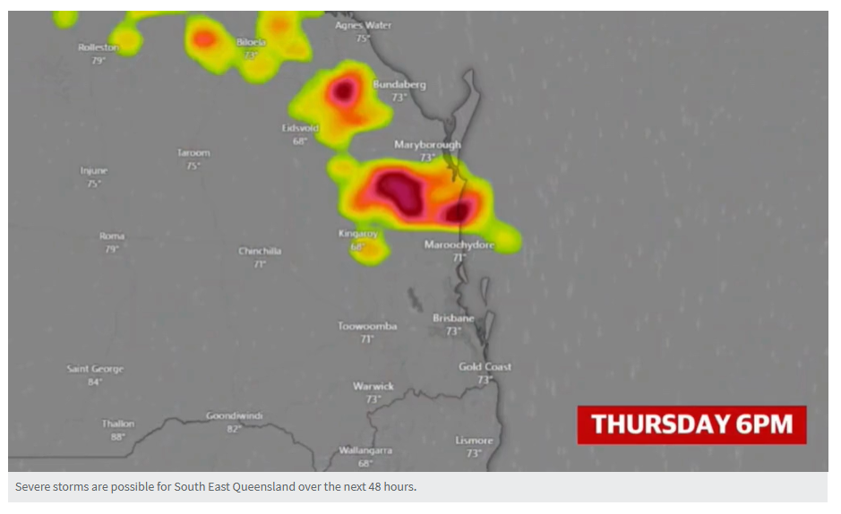 气象学家Shane Kennedy表示,布里斯班、黄金海岸和阳光海岸在这两天都可能会出现不稳定天气,但风暴更有可能于周五袭击该地区。