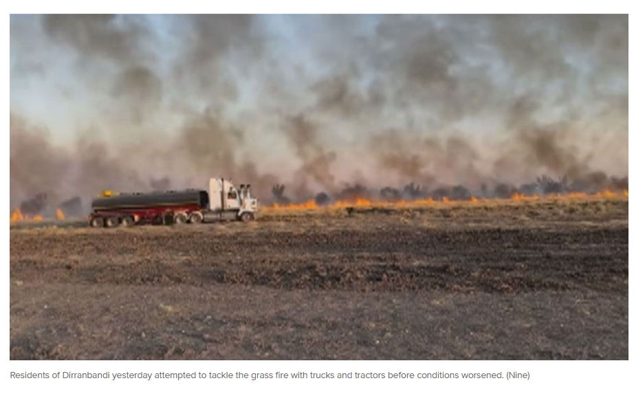 昨日下午2点15分左右,紧急服务部门前往处理Dirranbandi外约4公里处的草地火灾。