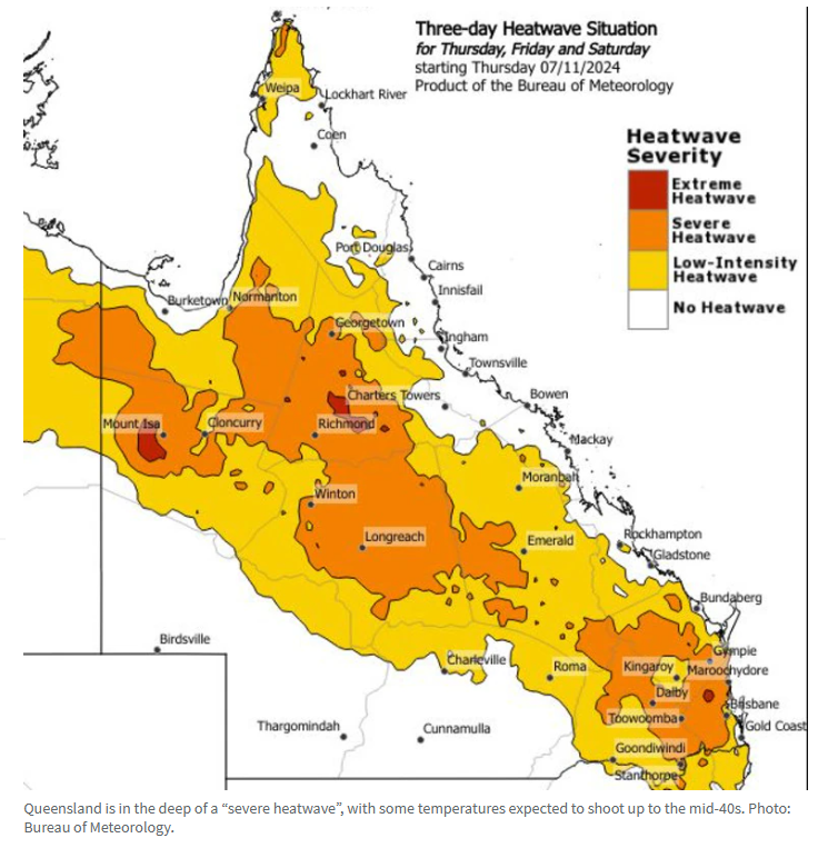 气象学家Sarah Scully证实,过去三天昆州大部分地区的气温都明显高于平均水平,甚至扩展到了昆州的大部分地区和新州的东北部。