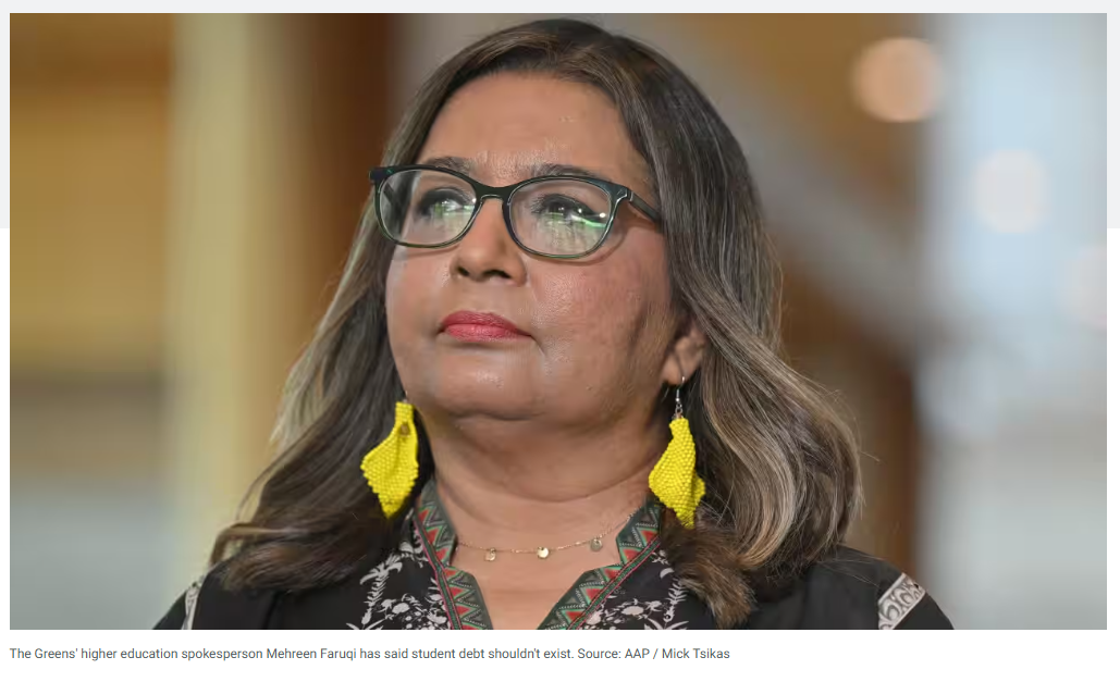 绿党副领袖兼高等教育发言人Mehreen Faruqi周一在社交媒体平台X上发帖称,"学生债务无法解决,因为学生债务本就不应该存在,如果Anthony Albanese可以免费上大学,那么其他人也应该可以"。