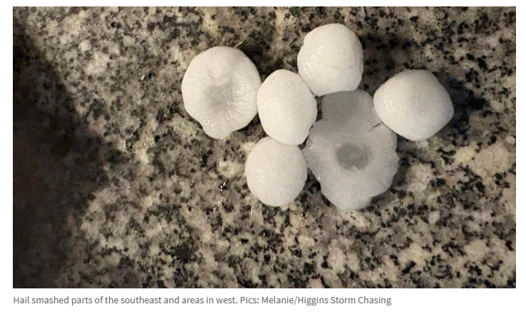 布里斯班以西地区遭到冰雹袭击,Greenbank和Wyaralong记录到4厘米的冰雹,Ipswich附近的Haigslea记录到3厘米的冰雹。