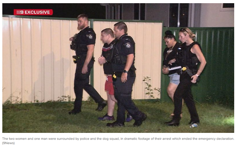 在逮捕疑犯的过程中,两名妇女和一名男子被警察和警犬队包围,随即紧急状态宣告结束。