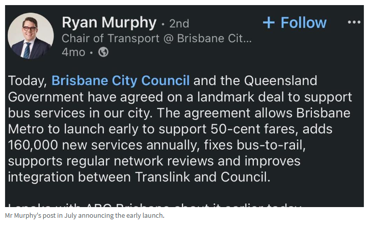标题: 布里斯班巴士捷运系统开通仅四周后悄然停运!