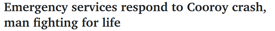 标题: Bruce Hwy发生车祸,Cooroy附近北行方向道路封闭!