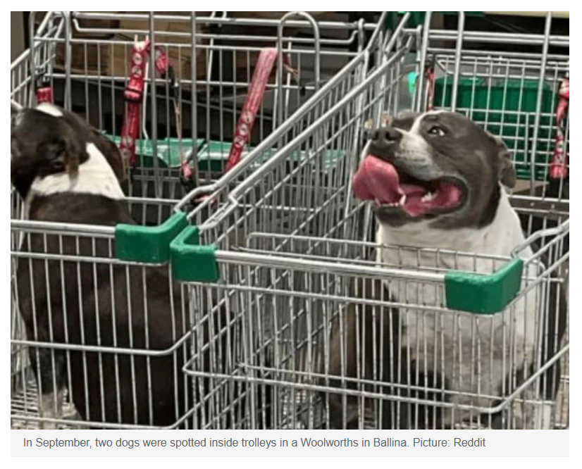 在9月发生的一起类似事件中,新州Ballina一家Woolworths商店的购物推车中发现了两只狗,但它们没有主人。