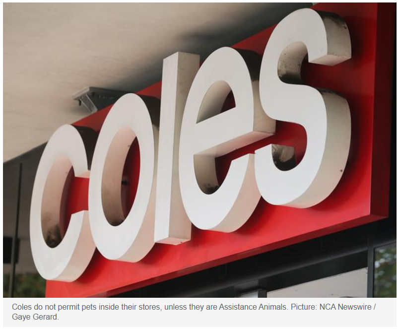 Coles超市的一位发言人表示:"我们不允许日常宠物或动物进入我们的商店。"