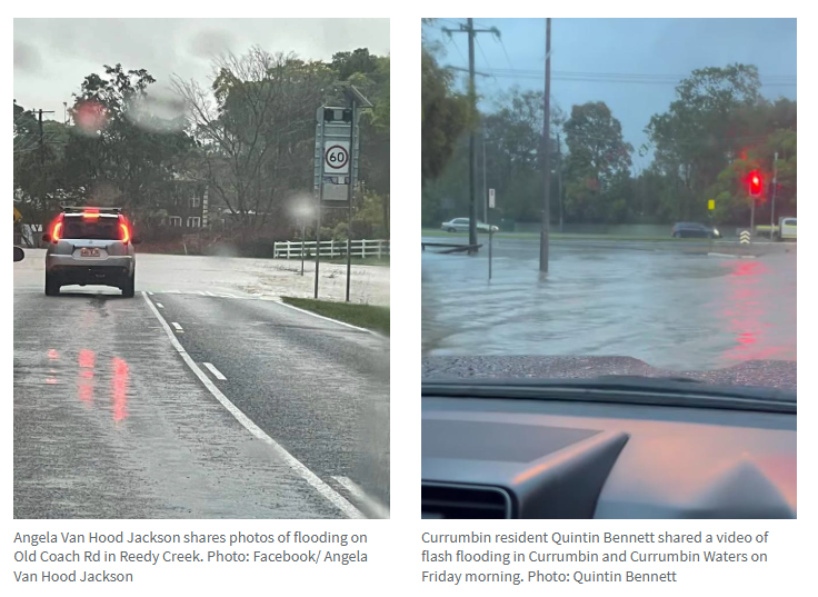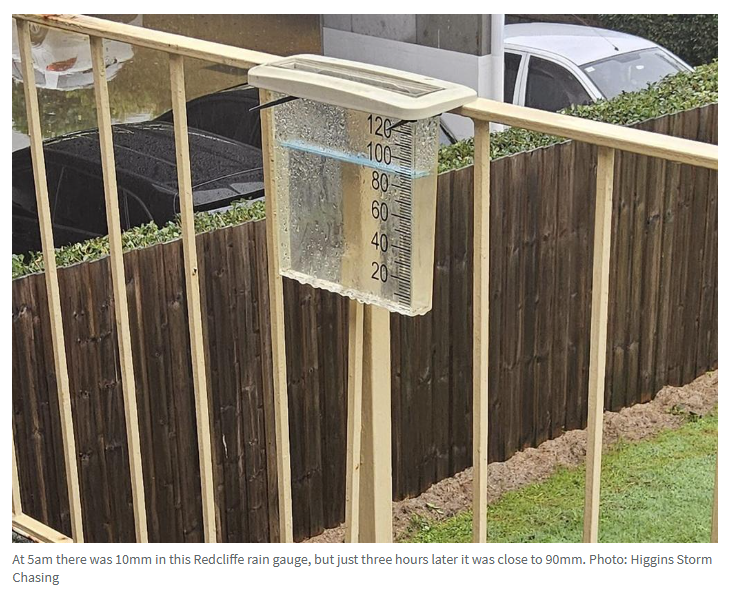 Tugun的降雨量达到167毫米,Currumbin Valley为145毫米,Coolangatta为154.8毫米,Palm Beach为149毫米,Redcliffe为73.8毫米。