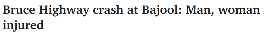 标题: Bruce Highway发生车祸,汽车坠入小溪,一男一女受伤!