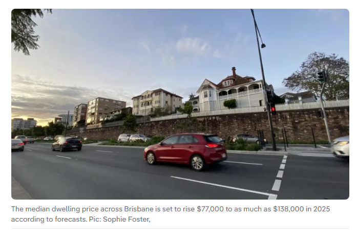 据预测,2025年布里斯班房价将飙升,仅一年的涨幅就将超过平均工资。