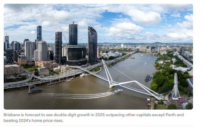 报告预计,2025年悉尼和墨尔本的房价将下跌1%至5%,但报告称,但这不会减缓南部首府城市买不起房子的人们对于布里斯班的需求。
