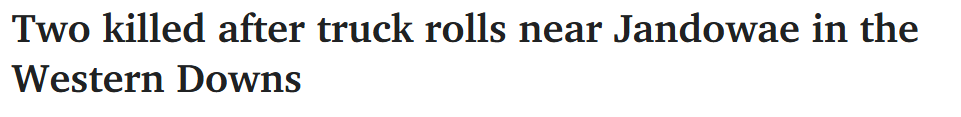 标题: 昆州Western Downs地区发生卡车翻车事故,两人死亡!