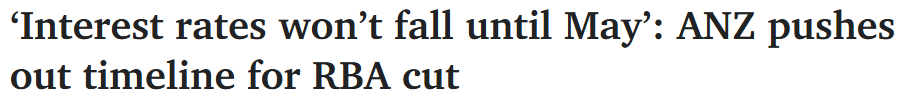 标题: ANZ转变降息预测:央行利率明年5月才会下降!