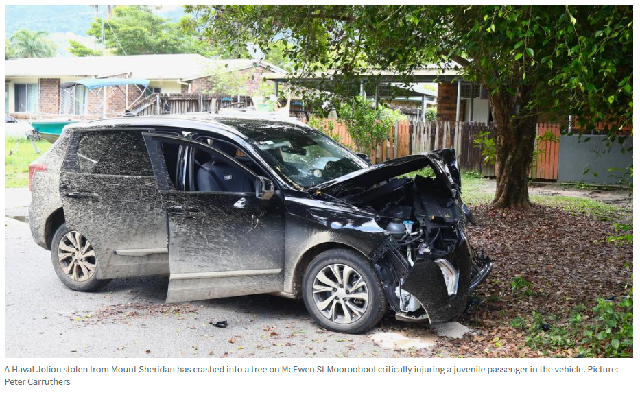 昆州警方表示,一名少年被困在Haval Jolion车内,该车于夜间从Mount Sheridan被盗。