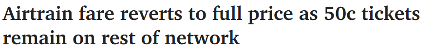 标题: 布里斯班机场快线将恢复全价,其余线路票价仍为50c!