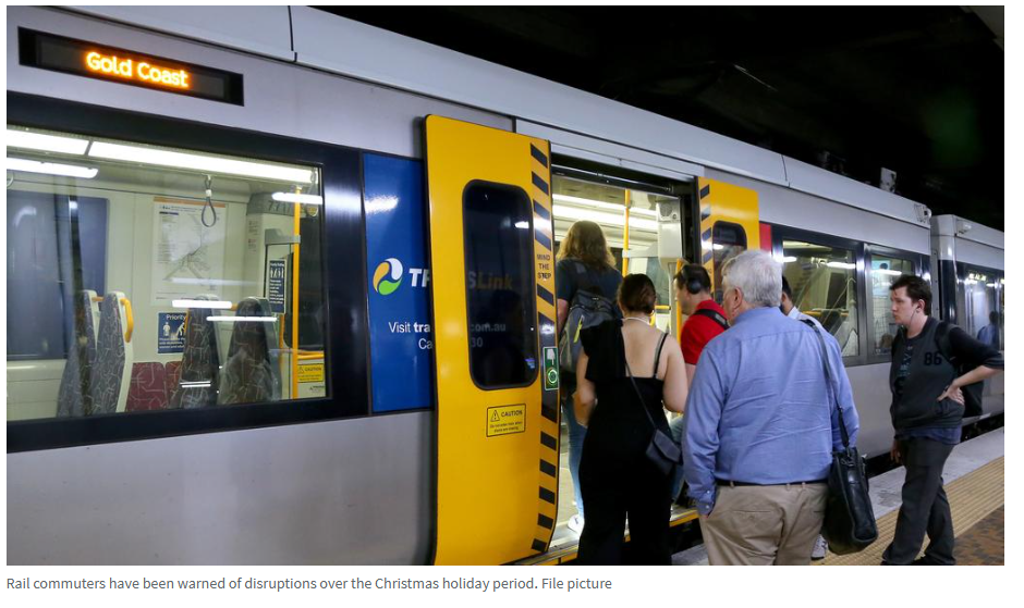 据悉,由于大量线路关闭与学校假期和圣诞节重合,昆州东南部的铁路乘客将遭遇严重交通中断。