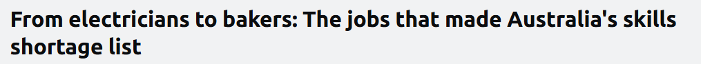 标题: 从电工到面包师:这些职业跻身澳大利亚技能短缺名单!