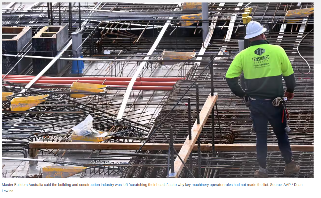 在周二发布后,MBA表示,建筑和建造行业对关键机械操作员职位未列入名单感到"莫名其妙"。