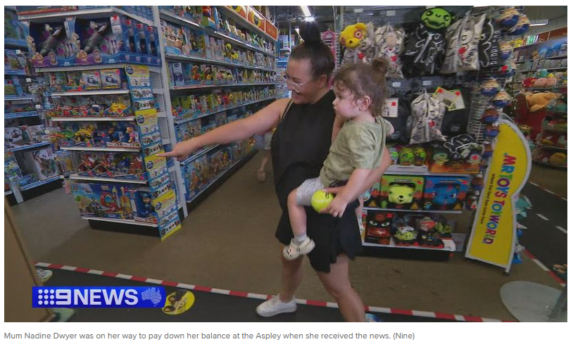 当一位妈妈Nadine Dwyer去布里斯班北侧的Aspley store偿还债务时,她收到了这个消息。