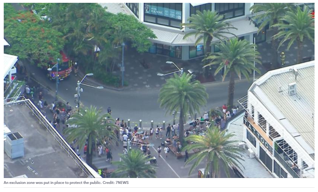 当天下午6点15分左右,Cavill Ave、Elkhorn Ave、The Esplanade和Surfers Paradise Blvd一带被划为禁区,要求该区域内的所有人留在室内,等待进一步通知。