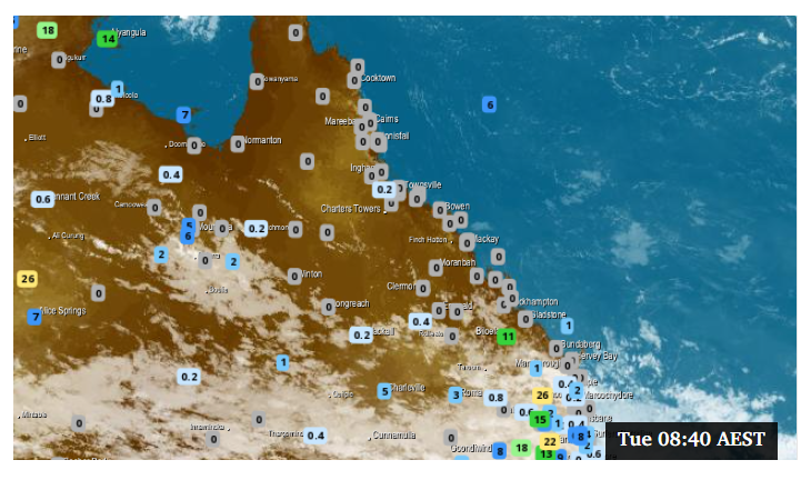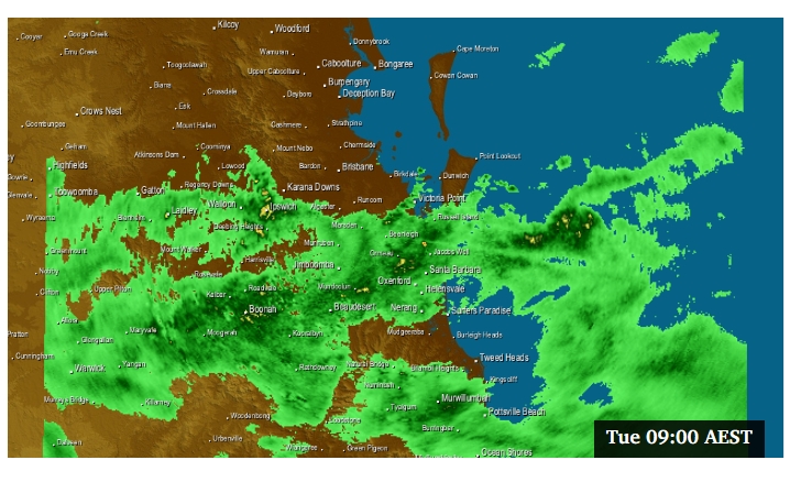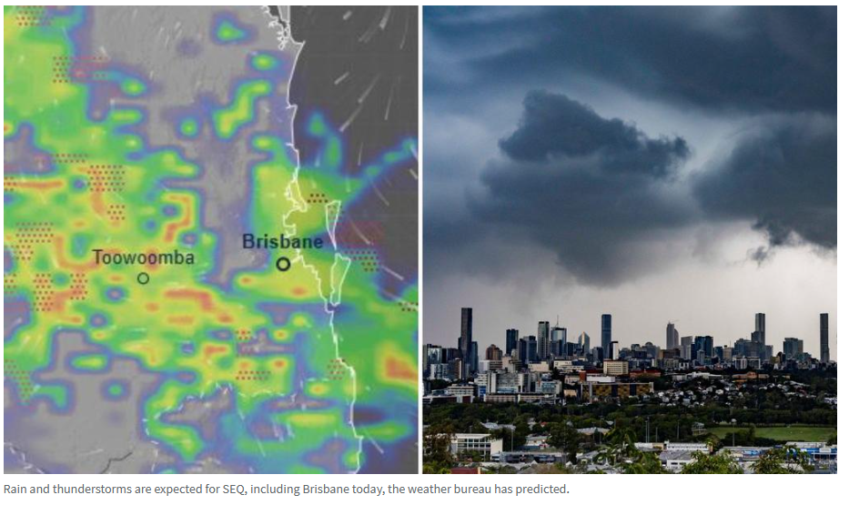 "随着我们进入下午和傍晚,布里斯班将迎来降雨和雷暴的高峰期,因为低气压正缓慢向北移动。"