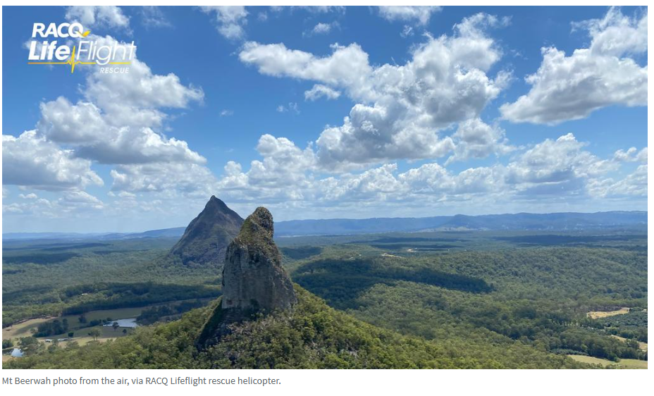 此前,救援人员曾赶赴Mt Tibrogargan的Glass House Mountains洞穴入口,帮助上周末被困的一名登山者。