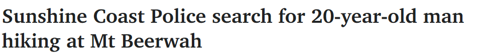 标题: 阳光海岸20岁男子徒步旅行失踪!