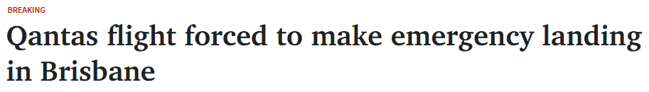 标题: 澳航航班突发故障,在布里斯班机场紧急迫降!