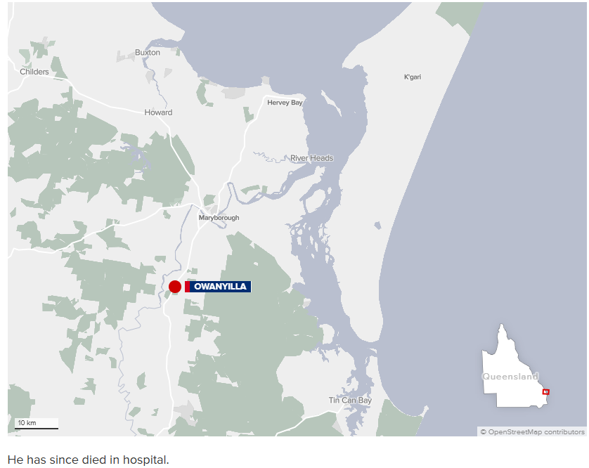 昨天下午3点20分,急救人员接到电话,前往布里斯班以北约250公里的Owanyilla一处私人住宅,处理一起挖掘机事故。