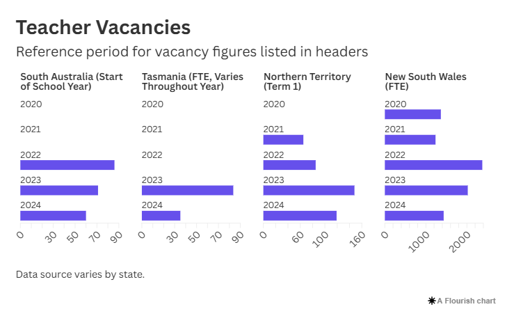 北领地也在努力留住教师,而南澳和塔州的情况正在恶化。