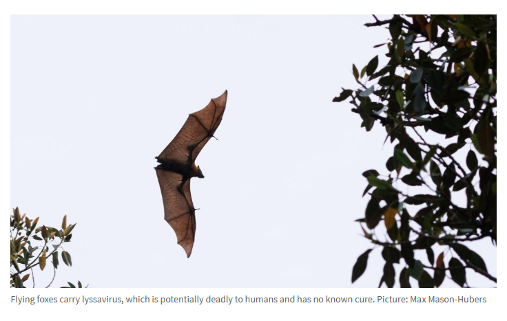 狐蝠麻痹综合症(FFPS)正在昆州东南部发生,加上极端高温,导致地面上和人们的院子里出现不健康的蝙蝠。