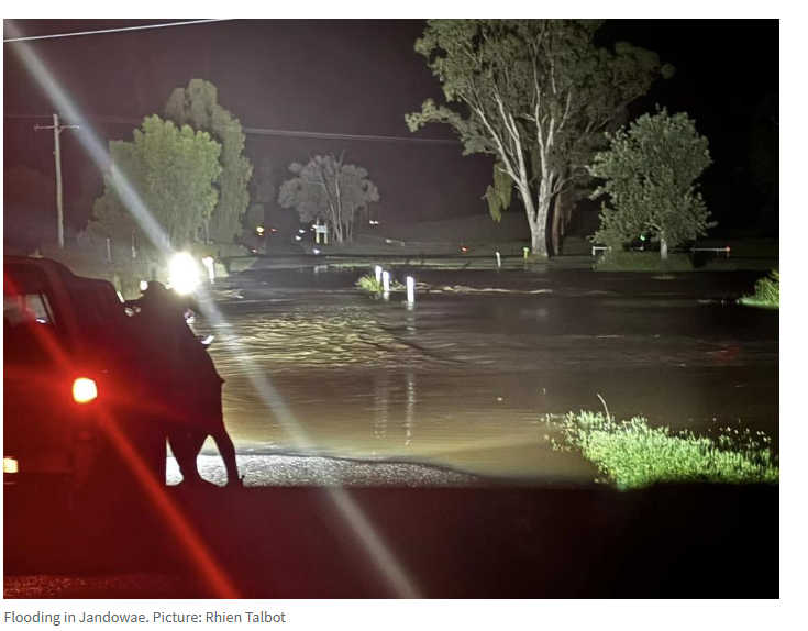 今天上午,警方接到报警,一辆汽车在Jandowae被水淹没,但车上人员设法脱身并步行到达安全地带。
